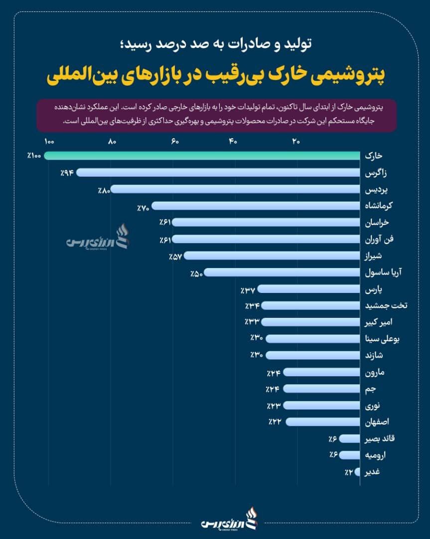 پتروشیمی خارک از ابتدای سال ۱۴۰۳ تا بهمن، تمام تولیدات خود را به بازارهای خارجی صادر کرده است.