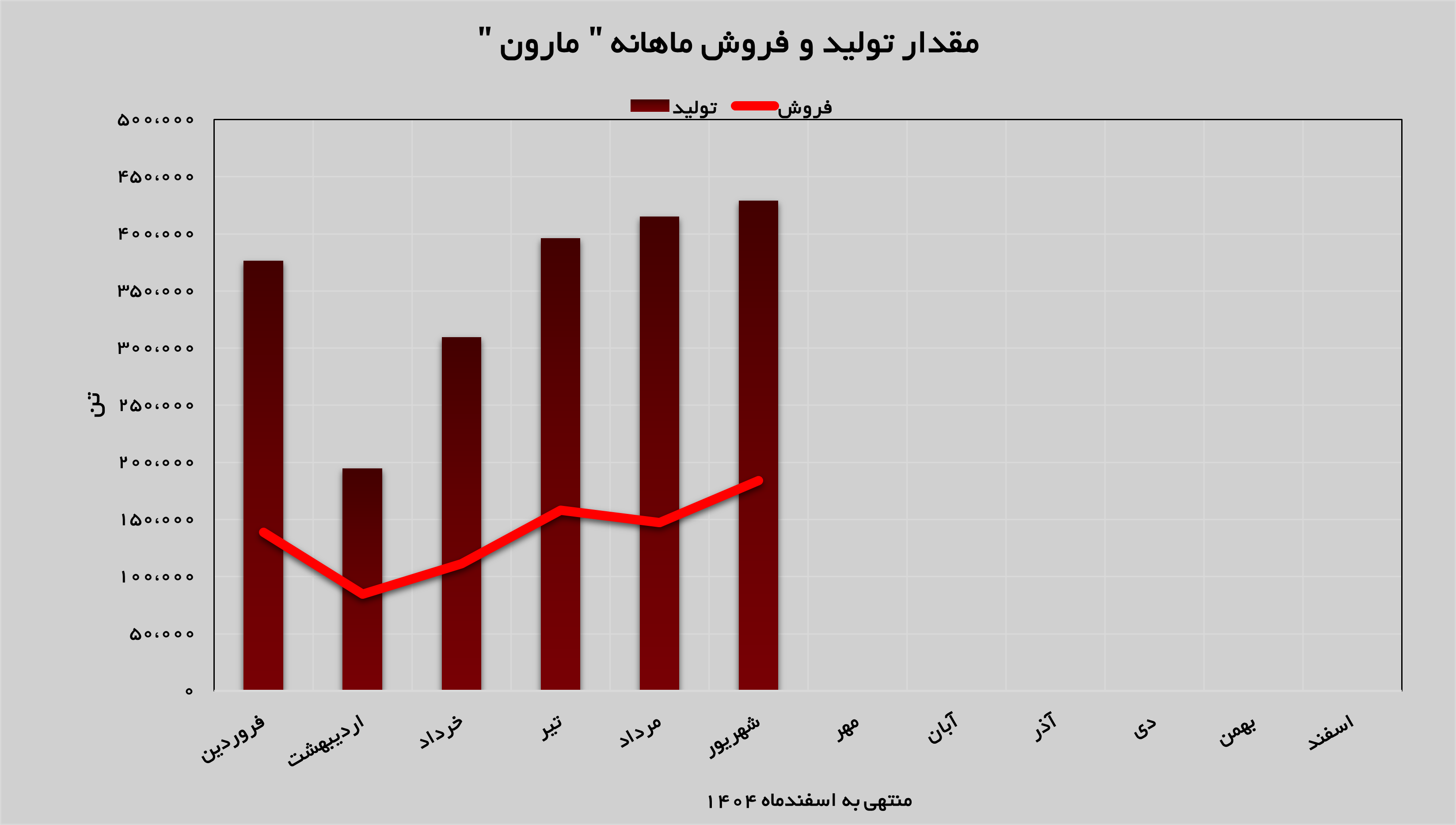 به گزارش نبض بازار، علاوه بر این، “مارون” در شهریور ماه سال جاری با فروش ۱۸۴ هزار و ۲۵۸ تن از محصولات خود توانست روند روبه رشدی را به نمایش بگذارد.
