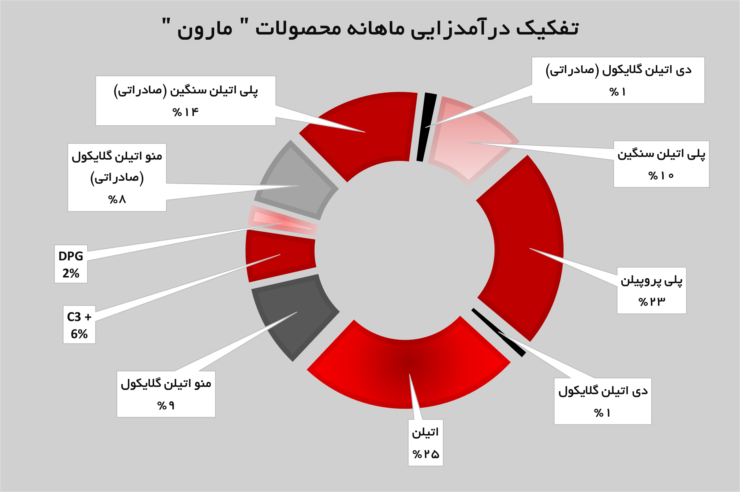 تفکیک درآمدزایی ماهانه محصولات پتروشیمی مارون