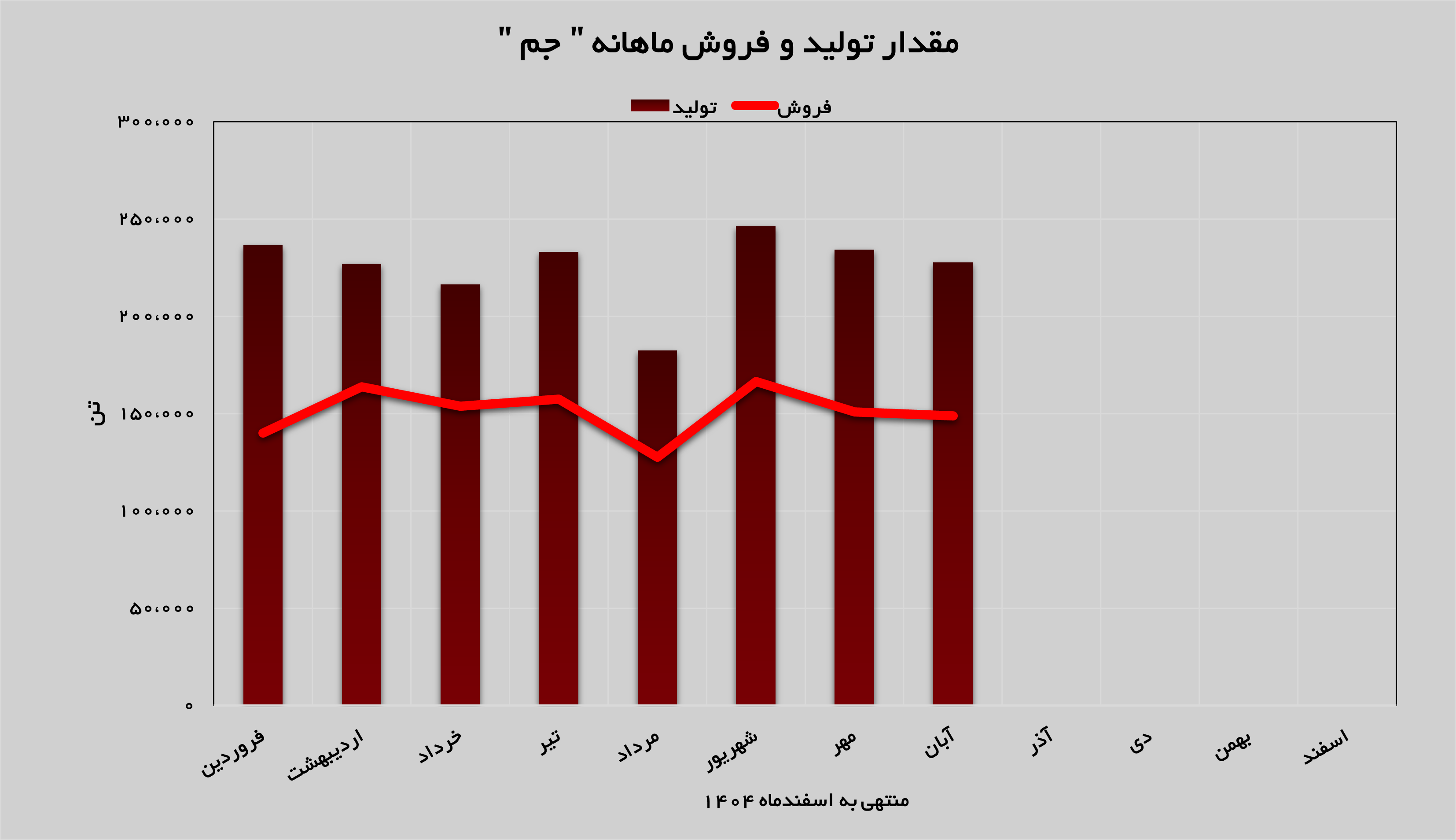 به گزارش نبض بازار، علاوه بر این، “جم” در آبان ماه سال جاری با فروش ۱۴۸ هزار و ۹۵۷ تن از محصولات خود توانست روند مناسبی را به نمایش بگذارد.